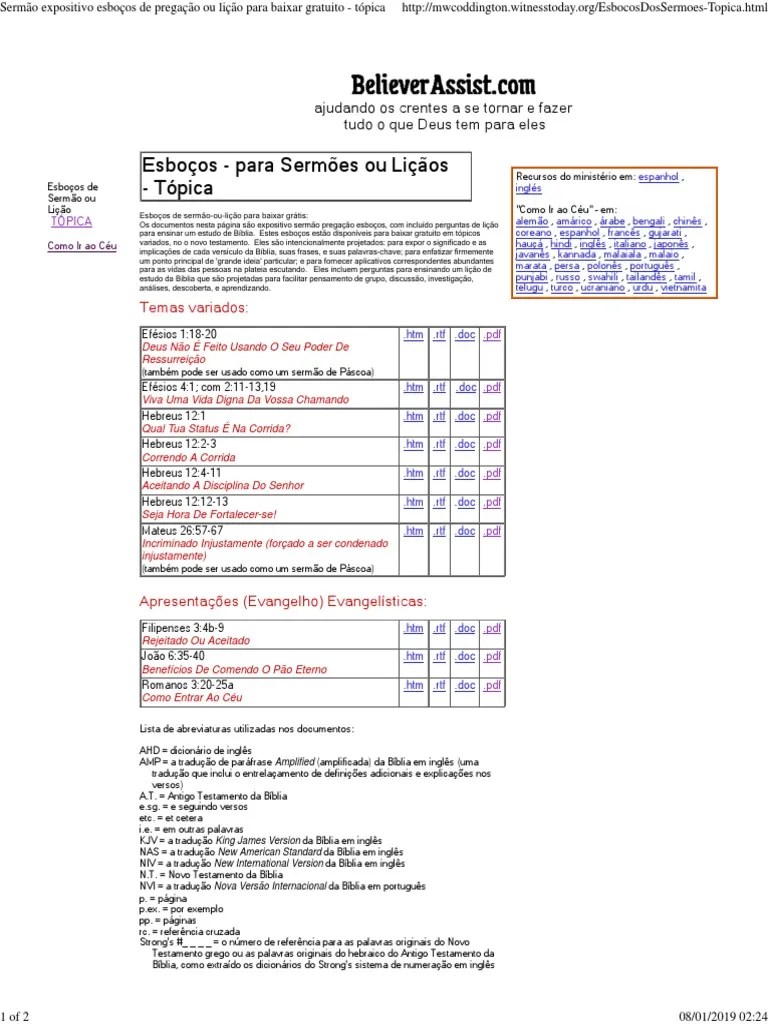 Navegue através desse arquivo de esboços de pregação, e escolha o esboço de pregação da vida cristã, ou qualquer outro tema de sermão que você deseja pregar, e/ou ensinar... 28.10.2012 · 760 esboços bíblicos de pregação.